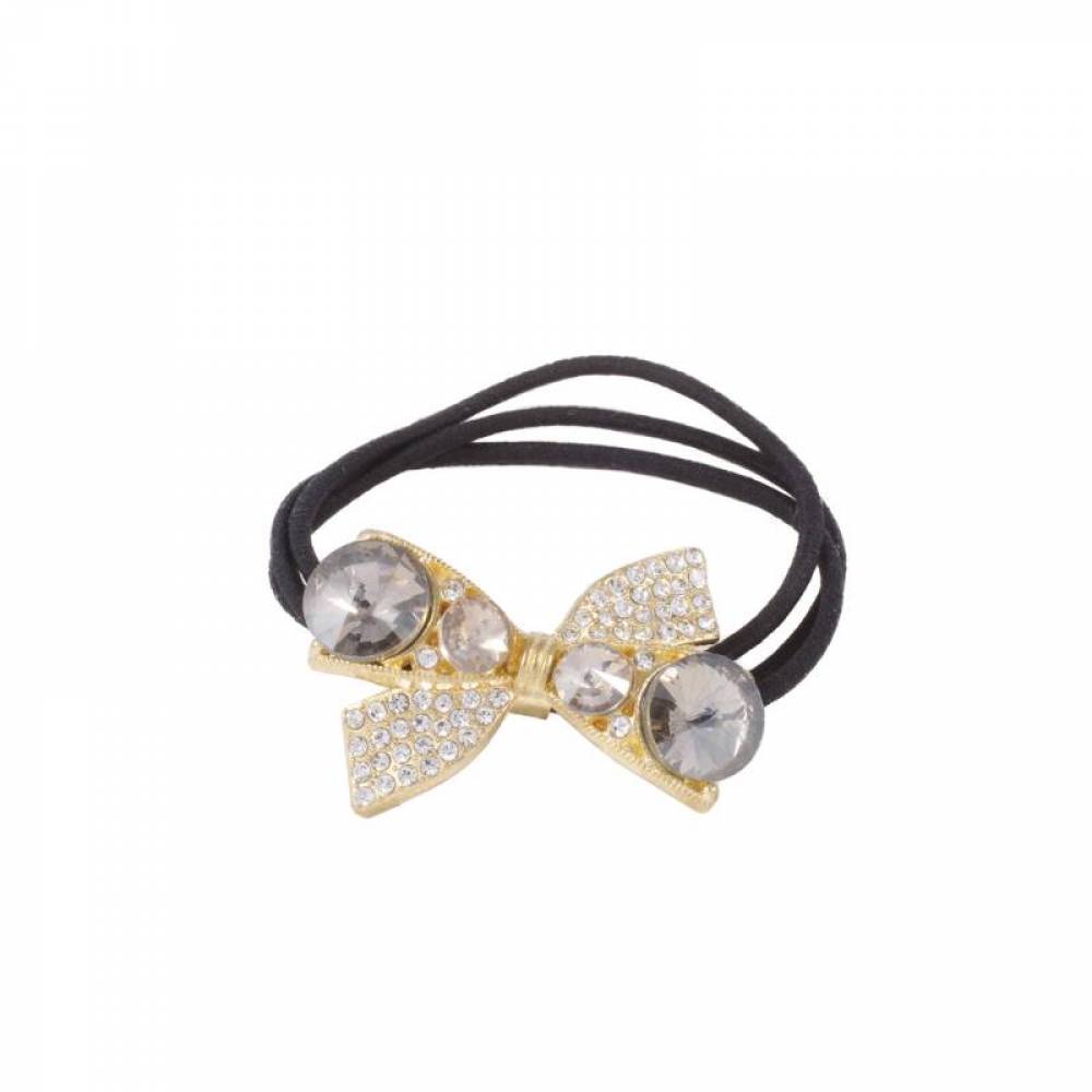 Λαστιχάκι Λεπτό Μαύρο Τριπλό με Χρυσό Κόσμημα Φιόγκο με Στρας και Πέτρες – Ρομαντική Κομψότητα!