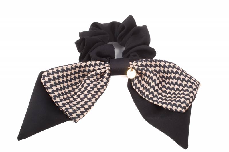 Λαστιχάκι Μαύρο με Φιόγκο Μαύρο και Καρό Μπεζ
