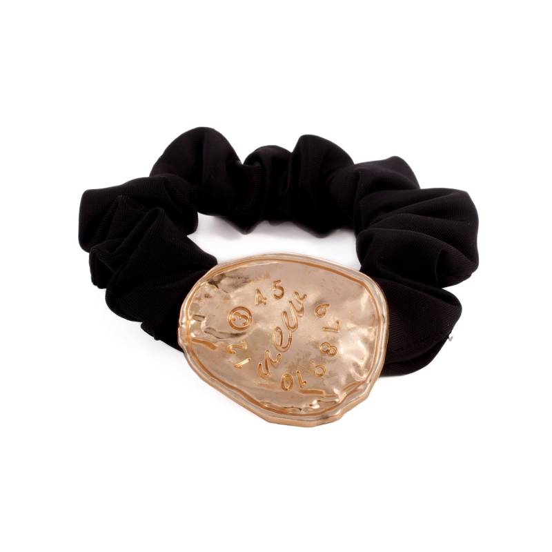 Λαστιχάκι Scrunchie Black Seal – Στυλ και Κομψότητα με Στρογγυλή Σφραγίδα ✨