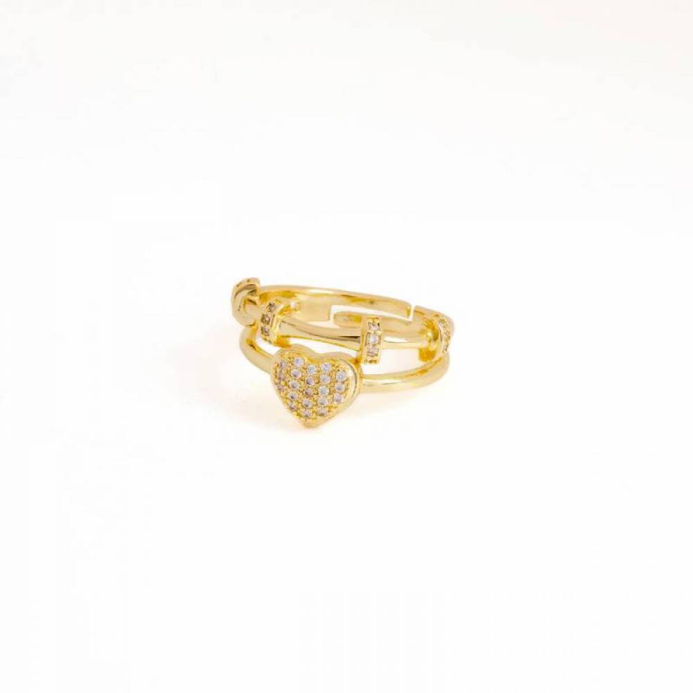 Αυτό το υπέροχο διπλό δαχτυλίδι με καρδιά και στρας στο κέντρο συνδυάζει ρομαντισμό και κομψότητα. Ιδανικό για ρομαντικές περιστάσεις και ιδιαίτερες στιγμές.