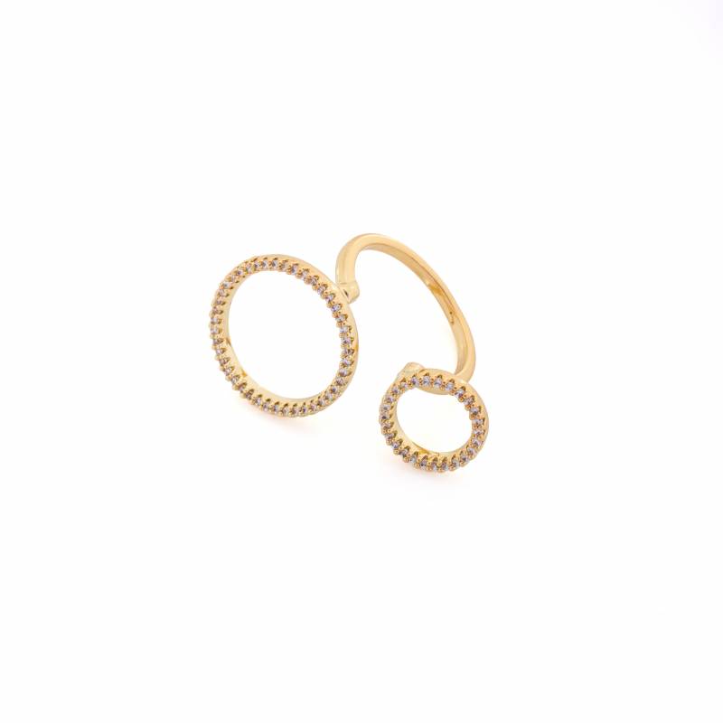 Οι δύο κύκλοι με στρασ δημιουργούν ένα κομψό και σύγχρονο αποτέλεσμα σε αυτό το υπέροχο δαχτυλίδι. Ιδανικό για κάθε περίσταση που απαιτεί στυλ και φινέτσα.
