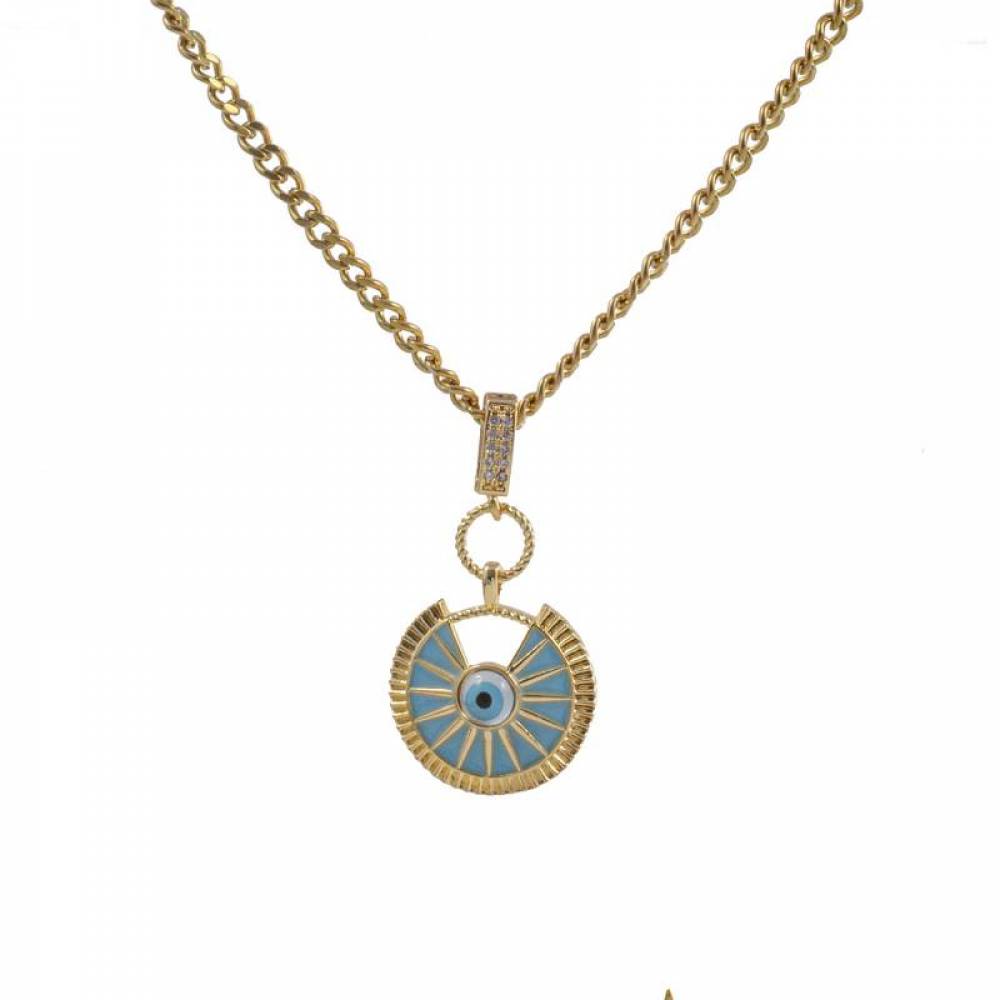Κολιέ Χρυσό με Ματάκι Κόσμημα και Βεραμαν Λεπτομέρειες – Γοητευτικό και Προστατευτικό!