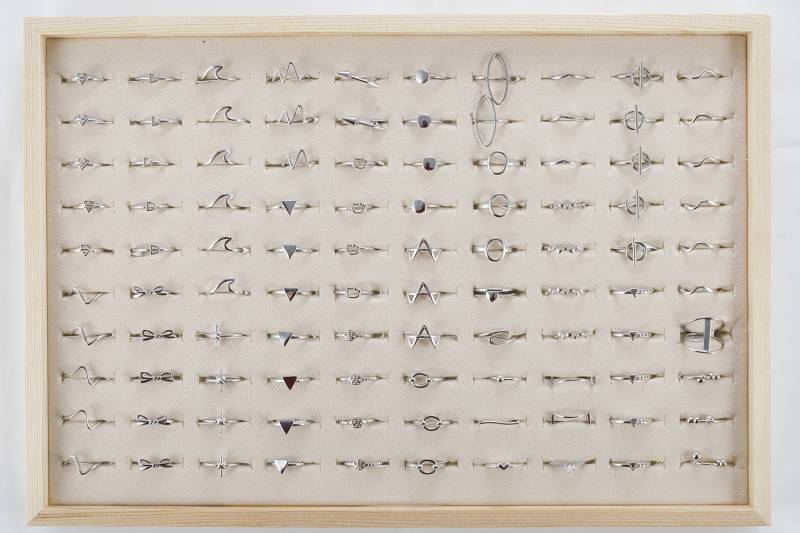 Σετ από διάφορα σχέδια ασημένια δαχτυλίδια για καθημερινές ή βραδινές εμφανίσεις.
