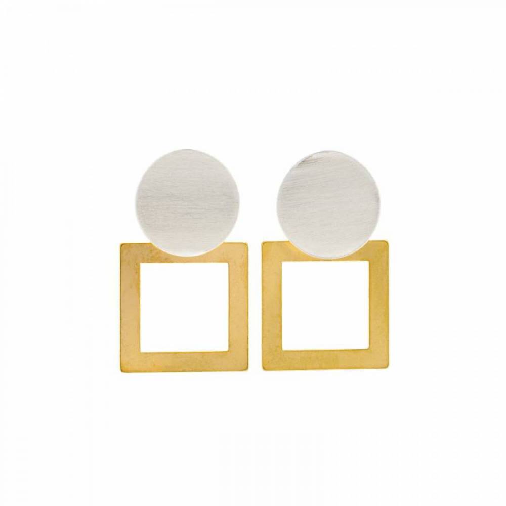 Σκουλαρίκια Χρυσό/Ασημί Τετράγωνα Κρεμαστά με Στρογγυλό Κούμπωμα – Μοντέρνα και Κομψά!