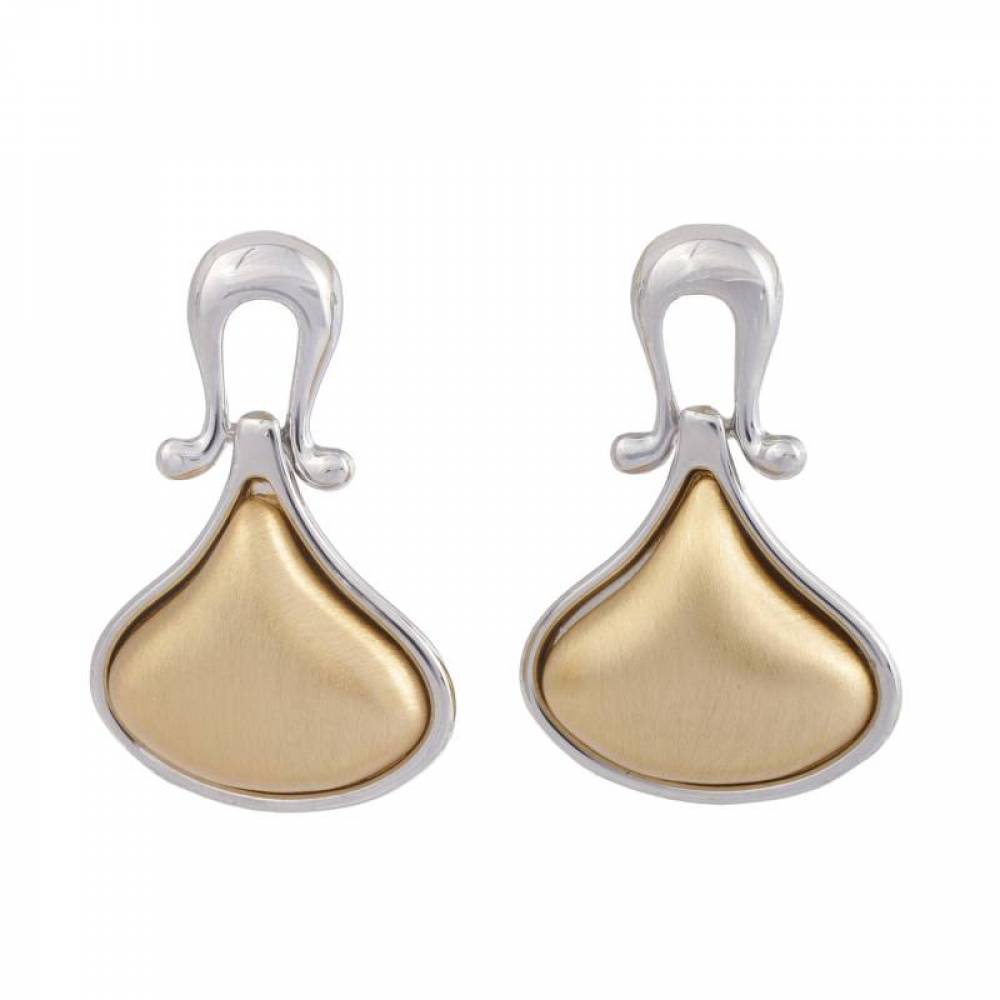 Σκουλαρίκια Ασημί/Χρυσό Κρεμαστά με Λευκή/Χρυσή Πέτρα – Timeless Elegance!