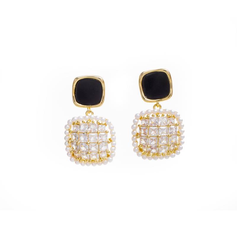 ΣΚΟΥΛΑΡΙΚΙΑ ΜΕ ΜΑΥΡΗ ΠΕΤΡΑ ΚΑΙ ΚΡΕΜΑΣΤΟ ΡΟΜΒΟ ΜΕ ΣΤΡΑΣ ΧΡΥΣΟ ΧΡΩΜΑ
