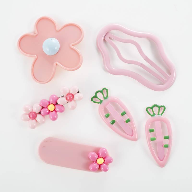 Ολοκληρώστε κάθε εμφάνιση με αυτό το σετ από κλιπ μαλλιών σε απαλές ροζ αποχρώσεις. Με σχέδια λουλουδιών, καρότων και διακοσμητικές λεπτομέρειες, αυτά τα κλιπ είναι ιδανικά για κάθε περίσταση!