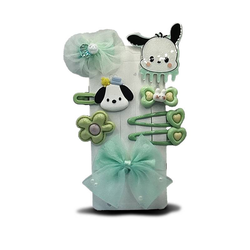Σετ Παιδικά Κλιπ Πράσινα, Σκυλάκι, Λουλούδια & Φιόγκοι