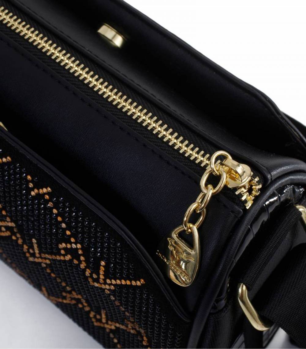 Τσάντα Ώμου Black Elegance – Στυλ και Πολυτέλεια σε Μαύρο με Χρυσές Λεπτομέρειες