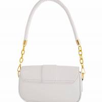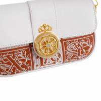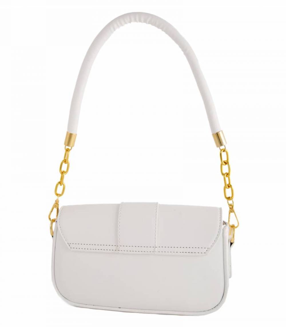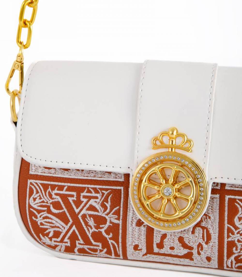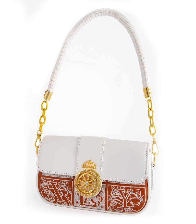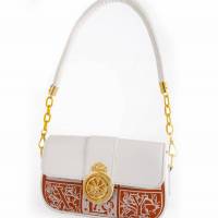 Τσάντα Ώμου Λευκή με Χρυσό Σχέδιο στο Κούμπωμα και Κόκκινες-Ασημένιες Λεπτομέρειες – Elegant & Chic!