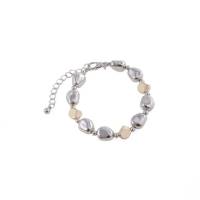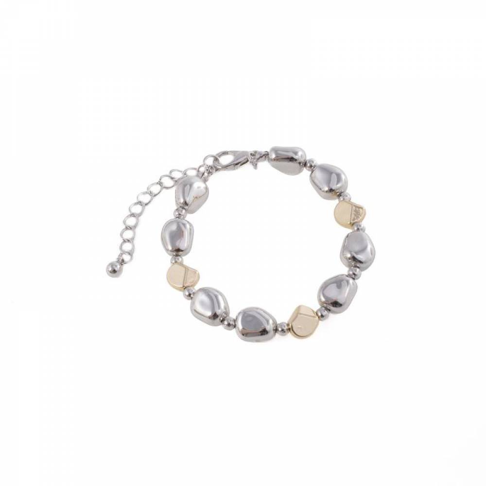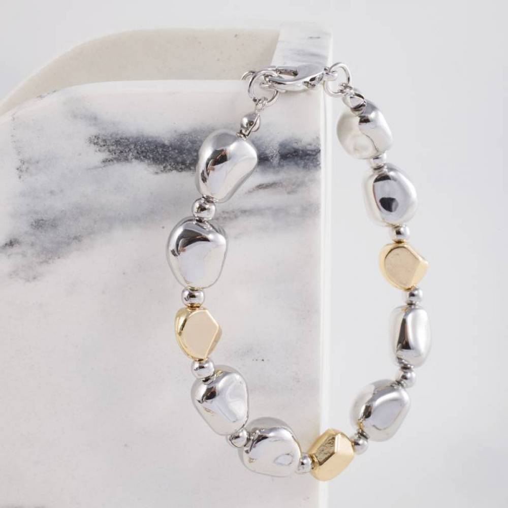 This silver and gold bracelet with pearls offers an extremely elegant look.